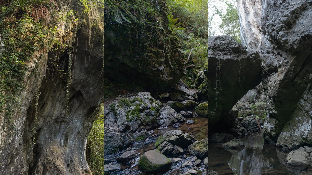 Tags: environment, landscape, nature, view, wild, wildlife, plant, green, cove cave, limestone, solutional cave, solution cave, karst cave, soluble rock, stone, chalk, dolomite, gypsum, geology, rocky, tunnel, moss, mossy, ancient, river, forest, stream, water, erosion, vegetation, boulder, boulders, wet, gray, overgrown, dark, canyon, stone ridges, thresholds, eroded hills, river valley