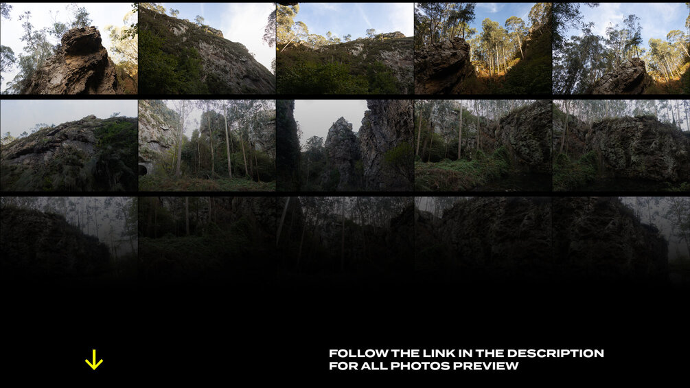 This pack features photo references of an eucalyptus forest spread on rocks and cliffs.